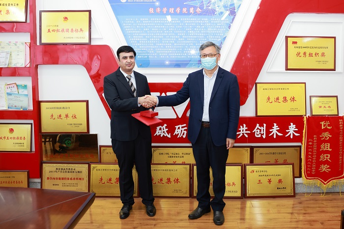 5月25日上午,受江苏省总工会委托,学校在希望大道校区仁和楼经济管理学院会议室举行江苏省五一劳动荣誉奖章颁奖仪式。校党委书记刘祖汉、党委副书记薛浩,党办、工会、人事处、国合处主要负责人,经管学院党政主要负责人、巴基斯坦籍教授哈什敏(ShabirMohsinHashmi)博士等出席。薛浩主持颁奖仪式。