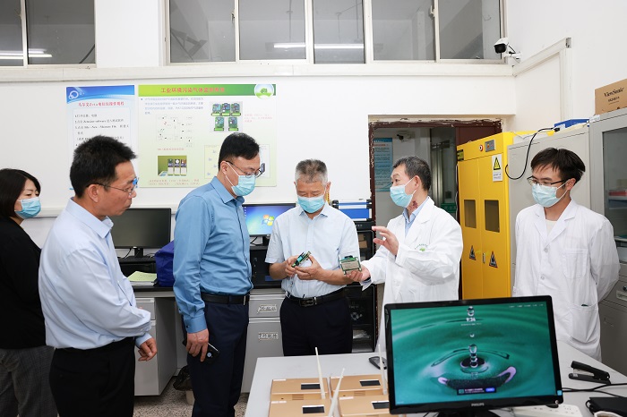 5月27日上午,省科技厅二级巡视员景茂、科研机构处四级调研员范宜,盐城市人民政府副秘书长颜彦,盐城市科技局局长韦向东、副局长姜浩然等一行赴我校新型环保重点实验室进行参观考察。党委书记刘祖汉主持座谈会。党委常委、副校长王路明,盐城市政协副主席、校科学技术处处长丁成,校产业技术研究院院长张勤芳等参加。