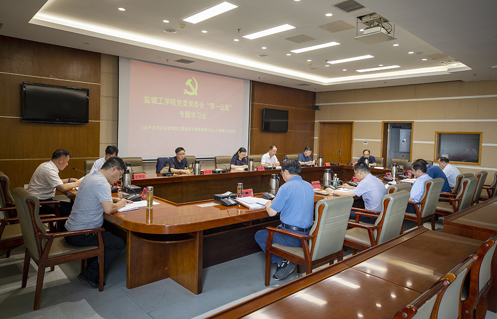 8月12日上午,在希望大道校区行政楼9楼视频会议室,校党委常委会以“第一议题”形式,认真学习习近平总书记在省部级主要领导干部专题研讨班上的重要讲话精神。校党委书记方海林主持。党委副书记、校长邵荣,党委副书记薛浩,党委常委、副校长崔刚、王资生,副校长、盐城市政协副主席丁成,副校长王伟、张勤芳,党委常委、组织部部长倪自银,党委常委、统战部部长姚军等参加。