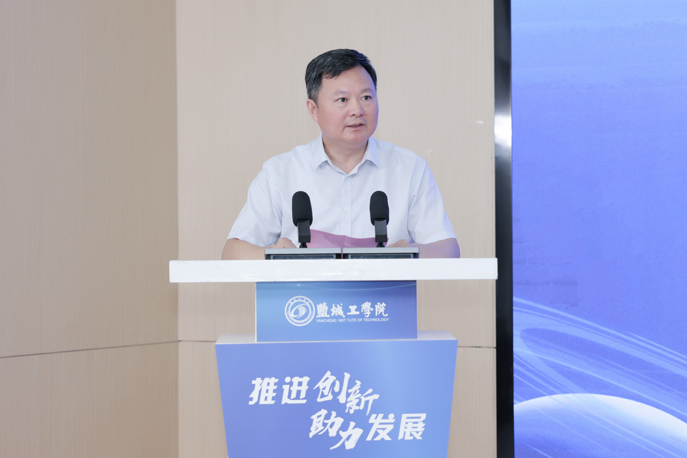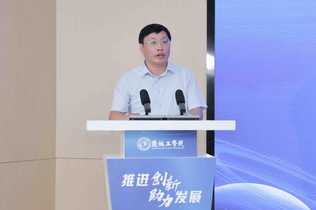 崔刚代表学校致辞。他介绍了我校深化校地融合、产教融合、科教融合的做法与成效。他表示,我校将进一步加强与各县市区、各个企业的沟通合作,加快科技成果的推广应用,不断提高我校促进盐城经济社会发展的贡献度,为盐城地方经济社会高质量发展提供更加坚实的科技与人才支撑。