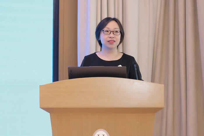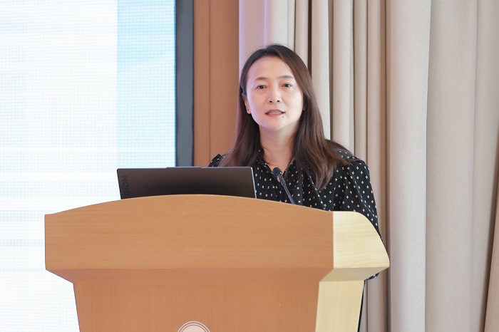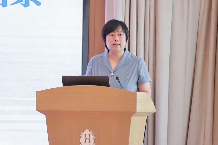 盐城黄海湿地生态文明建设研究中心执行主任、校设计艺术学院党总支书记胡凌霞作交流汇报