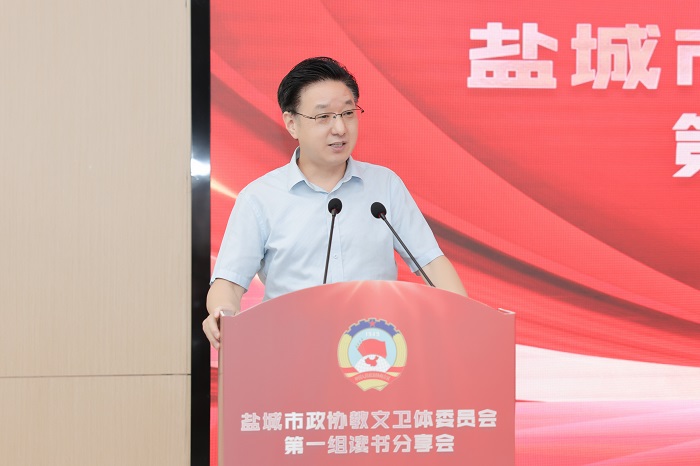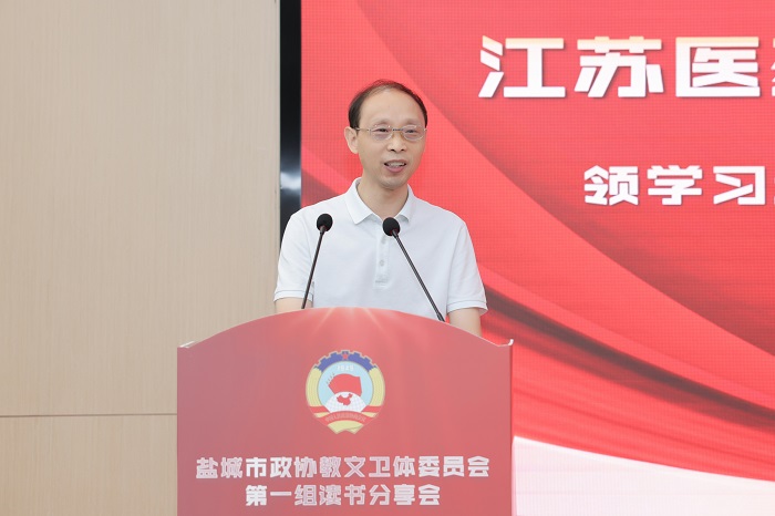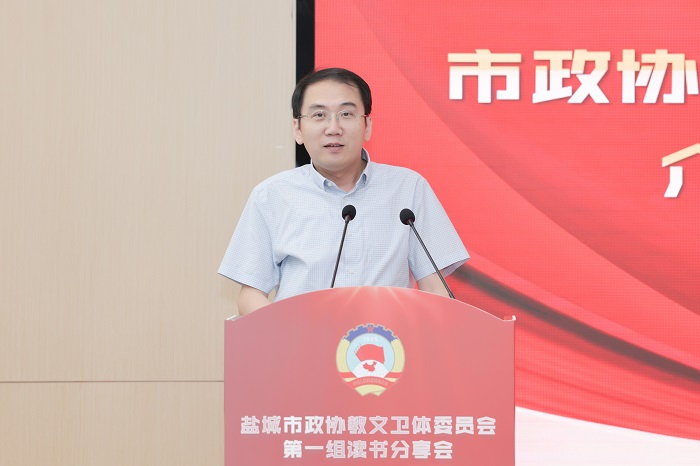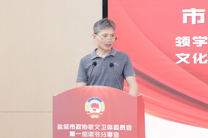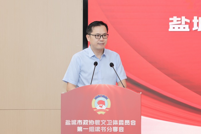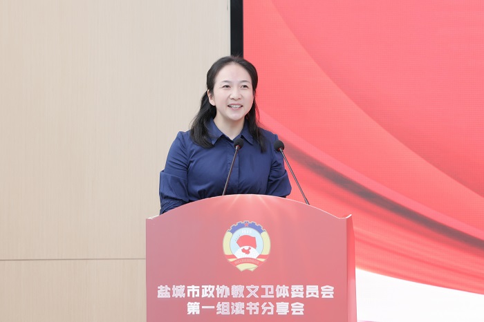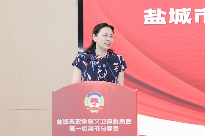 读书分享会上,孙福军领学《习近平谈治国理政》第四卷中收录的习近平总书记在教育文化卫生体育领域专家代表座谈会上的重要讲话精神,江苏医药职业学院药学院院长于广华领学习近平总书记关于高职教育方面的有关讲话精神,周为仲介绍“双减”政策及我市“双减”工作推进情况,盐城市康居路初级中学校长陈巧云、盐城市第一小学副校长祁生洋分别交流读书心得体会。活动中,还开展“学习强国”答题竞赛活动,由我校发改办主任、高教院院长宋青主持,各位委员积极参与,现场形成了良好的学习氛围。