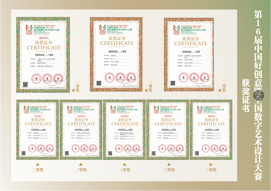 近日,第十六届中国好创意暨全国数字艺术设计大赛终评会在广西桂林举行,设计艺术学院学生在本届大赛中获得全国一等奖3项,二等奖2项,三等奖3项。