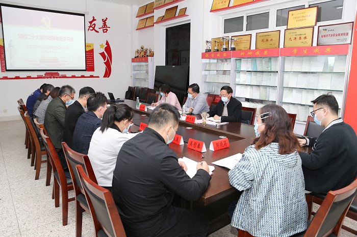 陈伟强调,要深入学习贯彻习近平总书记在党的二十大上的重要讲话精神,深刻领会“两个确立”的决定性意义,坚决做到“两个维护”;要深入学习贯彻习近平新时代中国特色社会主义思想,自觉弘扬伟大建党精神;要坚决贯彻落实党中央决策部署和习近平总书记重要指示批示精神,统筹发展和安全,常态化做好疫情防控工作。他要求,学习贯彻党的二十大精神,要在常学常新上下更大功夫,既要坚持原原本本地学,为深入抓好贯彻落实打好基础;又要将学习贯彻党的二十大精神与实践相结合,加深理解、融会贯通、学用结合,为学院发展谋出路,为工作谋方向,坚持用各项工作开展的成效来衡量检验学习贯彻效果。
