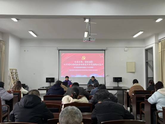 11月30日下午,在希望大道校区仁和楼A304会议室,校党委宣讲团成员、党委常委、组织部部长邢晓平作题为“自信自强,团结奋斗 以中国式现代化全面推进中华民族伟大复兴”的宣讲报告。人文学院党总支书记何登溢主持,教职员工和学生党员代表等40余人参加。