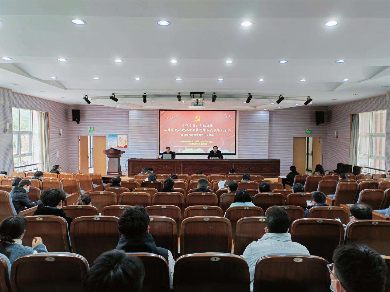 姚军围绕“自信自强,团结奋斗,以中国式现代化全面推进中华民族伟大复兴”主题,从深刻把握党的二十大的背景和主题、深刻把握过去5年的工作和新时代10年的伟大变革、深刻把握开辟马克思主义中国化时代化新境界的历史责任、深刻把握以中国式现代化全面推进中华民族伟大复兴的历史任务、深刻把握全面建设社会主义现代化国家的目标任务等方面详细宣传和解读党的二十大精神。他强调,党的二十大报告站位高远,思想深邃,内涵丰富,明确提出“必须坚持科技是第一生产力、人才是第一资源、创新是第一动力”,要“深入实施科教兴国战略、人才强国战略、创新驱动发展战略”,为高等教育的发展指明了道路和方向。高校教师要以党的二十大精神为指导,以“四有”好老师为标准,继续发挥艰苦奋斗的优良作风,秉持自信自强、守正创新、踔厉奋发、勇毅前行的精神,不断为学校事业发展贡献新的力量。