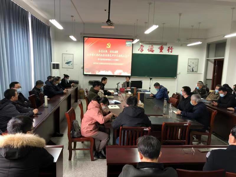 11月30日下午,在建军东路校区环境学院会议室,校党委宣讲团成员、校党委第三巡学旁听组组长田为龙为环境学院全体教职工作学习贯彻党的二十大精神专题宣讲,环境学院党总支书记陈阳主持,学院全体教职工通过线上线下参加。