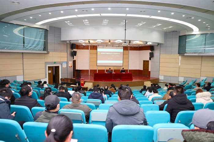 11月30日下午,在希望大道校区润美楼报告厅,校党委宣讲团成员、党委副书记薛浩为设计艺术学院教职工作学习贯彻党的二十大精神宣讲报告。学院党总支书记胡凌霞主持报告会,学院全体教职工在线上线下同步参会。