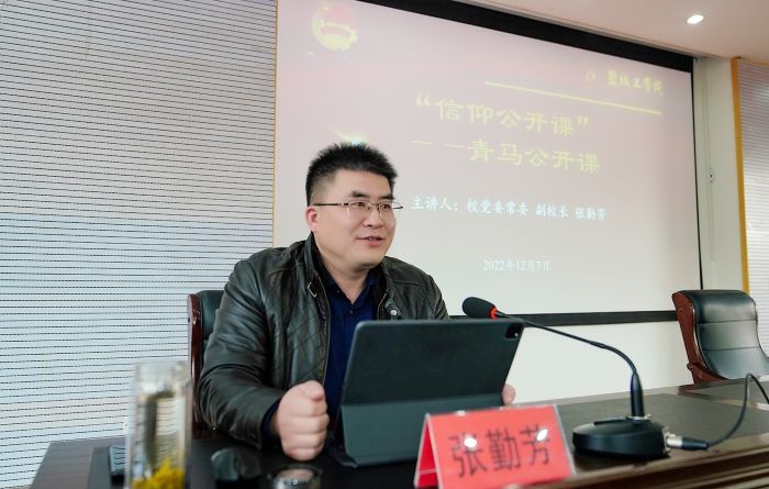张勤芳以《自信自强,团结奋斗——以中国式现代化全面推进中华民族伟大复兴》为题作信仰公开课和梦想公开课报告。他从党的二十大基本议程、主要成果、报告起草过程三方面系统介绍了党的二十大的基本情况,要求全体学员要深刻把握党的二十大背景和主题,深刻把握过去5年的工作和新时代10年的伟大变革,深刻把握马克思主义中国化时代化新境界的历史责任,深刻把握以中国式现代化全面推进中华民族伟大复兴的历史任务,深刻把握全面建设社会主义现代化国家的目标任务,深刻把握以伟大自我革命引领伟大社会革命的重要要求,深刻理解当前所面临的风险挑战,增强底线思维和忧患意识,在二十大精神的指引下团结奋斗。全体学员要紧密团结在以习近平同志为核心的党中央周围,高举中国特色社会主义伟大旗帜,全面贯彻习近平新时代中国特色社会主义思想,牢记空谈误国、实干兴邦,坚定信心、同心同德,埋头苦干、奋勇前进,为全面建设社会主义现代化国家、全面推进中华民族伟大复兴而团结奋斗。
