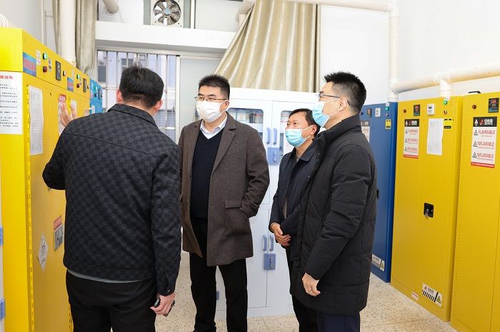 在纺服、电气、海生、环境等学院实验室和省新型环保重点实验室,校领导就实验室日常安全管理、危化品使用规范及保管、大型仪器开放共享及维护保养、危废收集处置等工作落实情况进行详细检查,重点检查了气体钢瓶、化学试剂等危化品的存储和使用情况