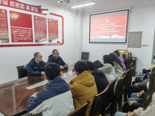 12月8日晚,在北校区化工楼重点实验室报告厅,校党委宣讲团成员、材料学院党委书记唐浩作题为《团结奋斗,谱写新时代中国特色社会主义绚丽华章》的党的二十大精神宣讲报告。报告采取线上和线下结合的方式,学生党员、班级团支书、学生会主要干部、积极分子等300余人参加。