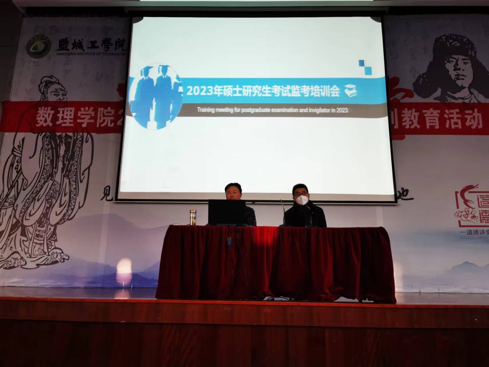 12月23日下午,根据考试中心统一安排,党委常委、副校长王伟主持召开考务培训会,并对本次研考工作提出要求。校领导在考试期间深入考场一线进行了巡视;针对本次考试感染风险大、监考老师时有发热退出导致人手不足的情况,来自盐城工学院、盐城市亭湖区实验小学、盐城市亭湖高级中学的各位同仁,克服种种困难,圆满完成了全部考试各项任务,充分体现了盐城工学院及亭湖区中小学教师的责任与担当。另外,本次考试专门设置了特殊考场(疑似阳性考生),特别感谢张晓东、周晓燕、魏语婷、严春生等承担了特殊考场监考,一并感谢考试主管单位和卫生健康部门对我校考点的关心和大力支持。
