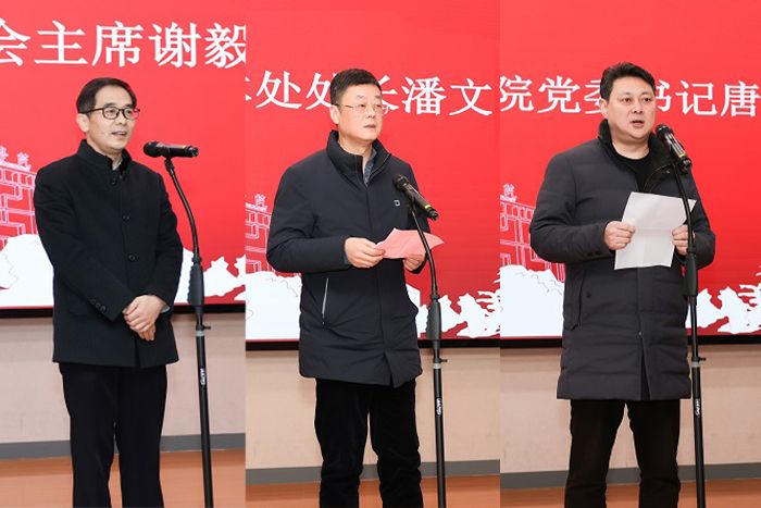 工会主席谢毅敏、离退休工作处处长潘文东、材料学院党委书记唐浩对荣休教师送上感谢与祝福