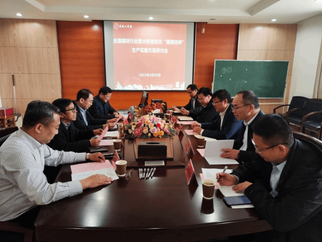 3月30日下午,中建材科创新研究院院长张忠伦、科技发展部副部长刘振森,枣庄中联水泥有限公司总经理于光民,枣庄中联水泥有限公司副总工、技术装备部部长祁广旺,枣庄中联水泥有限公司“鲁班工匠”获得者李理国一行5人来我校就联合获批的首批全国建材行业重大科技攻关“揭榜挂帅”项目进行生产实施方案研讨交流。我校副校长、盐城市政协副主席丁成,产业技术研究院负责人及课题组相关人员参加研讨。