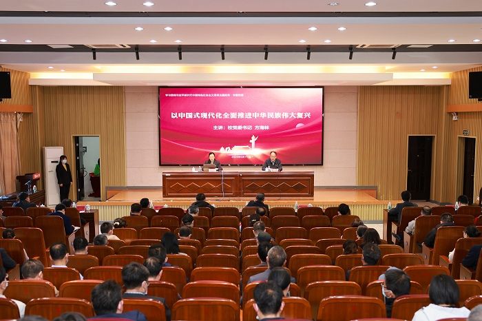 为深入开展学习贯彻习近平新时代中国特色社会主义思想主题教育,进一步引导广大党员干部学理论、强党性,推进主题教育走实走深,5月11日下午,在希望大道校区机械馆报告厅,党委书记方海林讲授《以中国式现代化全面推进中华民族伟大复兴》主题教育专题党课。校长、党委副书记邵荣主持。