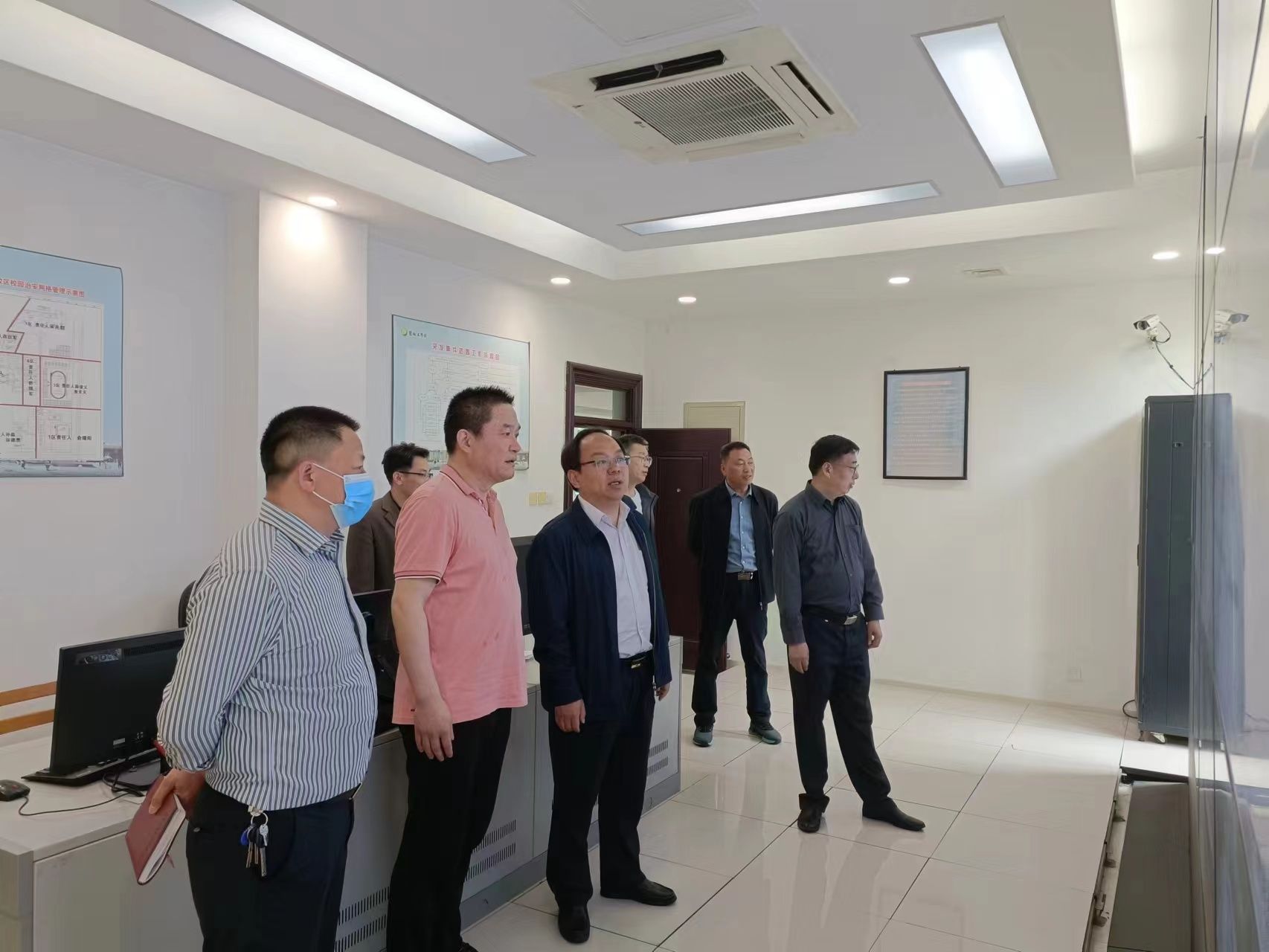 校安保处处长张晓东从学校安全管理基本情况、贯彻落实省厅安全检查工作开展情况及存在不足与努力方向等汇报了我校安全工作情况。检查组一行还仔细查阅了学校安全工作台账,现场检查了校园110监控中心、消防控制室、电工电子实训室、学生公寓和食堂等重点区域。