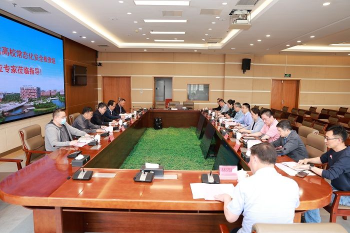 邹小波介绍了此次常态化安全检查的目的、意义和相关要求。王伟代表学校对检查组的到来表示欢迎并简要介绍了学校的办学、发展等基本情况。他指出,学校党委、行政始终牢固树立安全发展理念,坚持“稳定压倒一切”的理念和“安全第一、预防为主、综合治理”的安全工作方针,落实“党政同责、一岗双责、全员参与、齐抓共管”的责任机制,努力构建 “大安全”工作格局,有力保障和促进了学校持续、健康、稳定发展。他表示,学校将根据检查组给出的建议,进一步提高政治站位、攻坚克难、狠抓落实,筑牢学校安全防线,保障师生生命财产安全,为学校一流应用型大学建设提供安全保障。