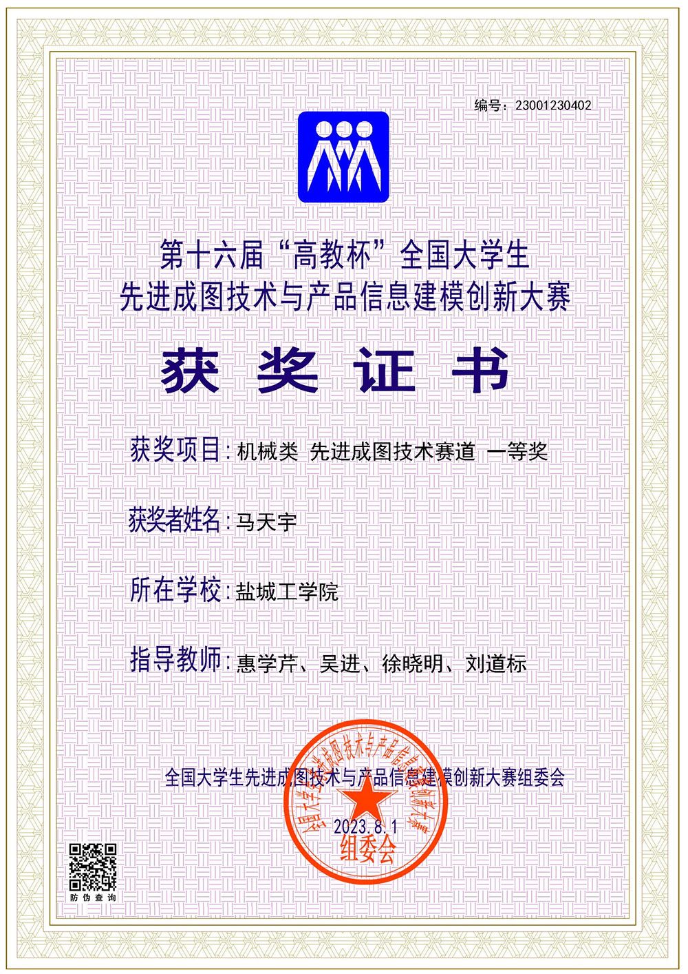 近日,第十六届“高教杯”全国大学生先进成图技术与产品信息建模创新大赛全国总决赛在重庆举行。由机械优集学院刘道标、黄晓峰、惠学芹、吴进、徐晓明等老师指导,机械优集学院、优培学院吉志豪、马天宇、顾贝贝、唐佳怡、郭家瑞、冷怡彬、丁霏宇等七位同学组成的参赛队在机械类别比赛中取得优异成绩,共获得个人一等奖2项、个人二等奖5项,团体二等奖1项。