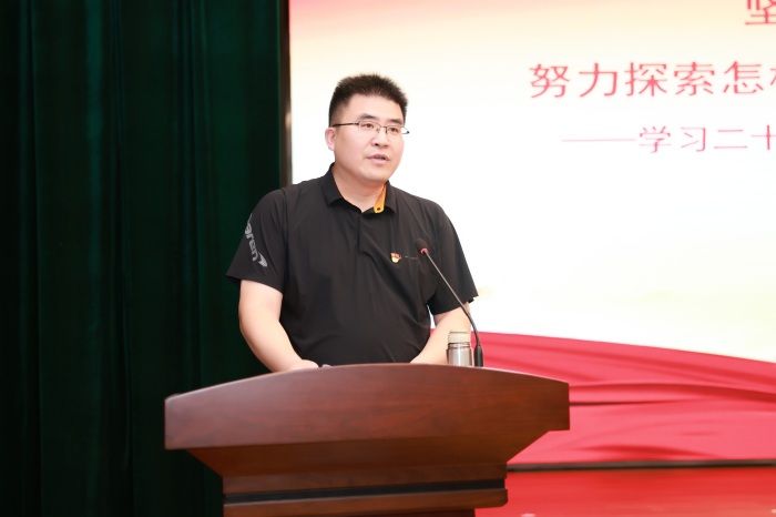 授牌仪式后,张云泉为全体人员讲授“坚持立德树人宗旨,努力探索怎样上好思政课和当好辅导员”学习党的二十大报告关于寄语青年论述感悟的主题党课。他回顾历史,追忆革命,用亲身经历、鲜活事例阐释“没有共产党就没有新中国”的深刻内涵,诠释了何谓共产党人的优秀作风,讲述他坚守为民的执着、刻苦学习的精神,用“三个务必”和“三个不忘记”与全体辅导员共勉,号召全体辅导员“不忘先辈苦,珍惜今日甜”,筑牢信仰根基、增强工作激情,保持“吃苦奉献的精神状态、开拓创新的工作方法和敢于担当的过人胆识”,读懂社会“无字书”,用卓有成效的工作服务社会、服务人民,当好让党放心、让学生满意的辅导员。