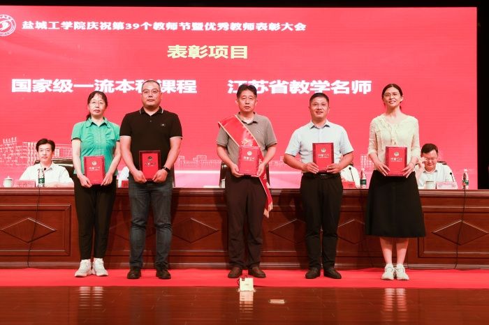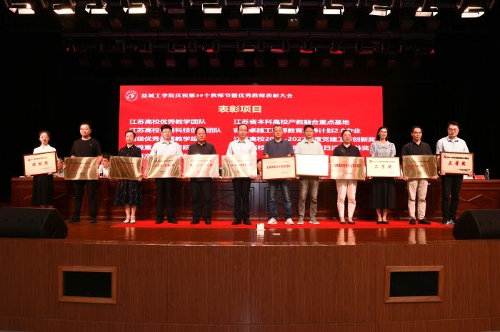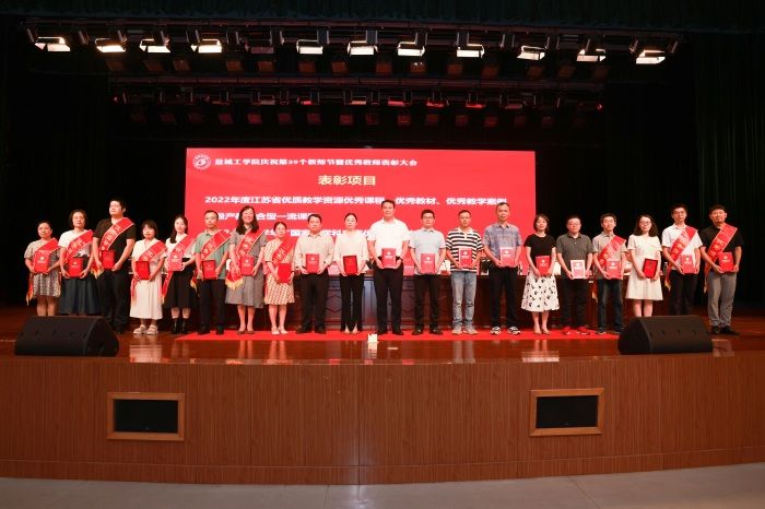 会议对国家级一流本科课程负责人、江苏省教学名师、2023年江苏省高校优秀教学团队、优秀科技创新团队、省级优秀基层教学组织、省级重点产业学院、江苏省本科高校产教融合重点基地、省级产教融合型品牌专业、省级卓越工程师教育培养计划2.0专业、江苏高校2021-2022年度党建工作创新奖、江苏高校2022年度最佳党日活动优胜奖等负责人,2022年度江苏省优质教学资源优秀课程、优秀教材、优秀教学案例,省级产教融合型一流课程,2022-2023学年“国家级学科竞赛优秀指导教师”、2022年度学校先进集体、2022年度教学工作先进集体、2022年度学校先进工作者代表、2022-2023学年“优秀教师”代表、2021-2022学年“最受学生欢迎的教师”代表、第十三届“江苏省高校辅导员年度人物”入围奖、学校2022年“优秀辅导员”等进行表彰。校领导为获奖的集体和个人颁奖。
