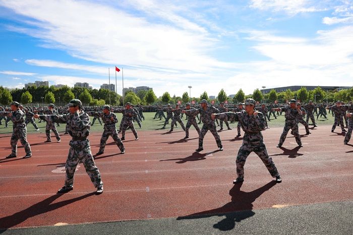 2023级新生军训工作时间紧,任务重,责任大,教官们精心指导、严格要求、身体力行;同学们挑战自我、强健体魄、磨砺意志;学校各部门单位通力协助,圆满完成各项军训任务。