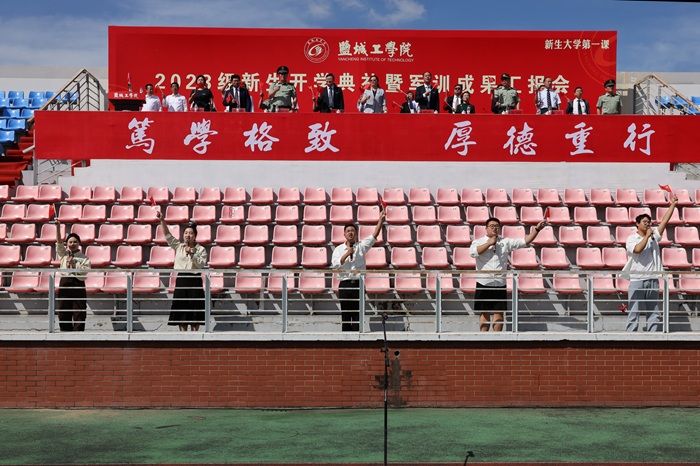 盐阜九月,青春正浓。9月22日上午,在希望大道校区田径场,学校隆重举行2023级本科新生开学典礼暨军训成果汇报会。校党委书记方海林,校长、党委副书记邵荣,党委常委、副校长崔刚、王资生、张勤芳,党委常委、统战部部长姚军,党委常委、组织部部长邢晓平,盐城市亭湖区人武部政委沈为民,盐城市第一中学党委书记、校长陈建权出席。73106部队承训官兵参加。张勤芳主持开学典礼。