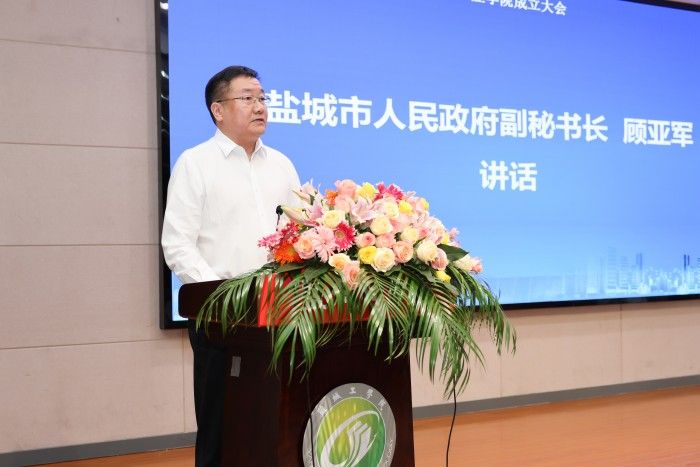 顾亚军代表盐城市委、市政府,对学院的揭牌成立表示祝贺。他指出,通过建立系统的专业人才培养培训及高层次人才引进体系,强化校企优势互补,促进教育链、人才链与产业链有机衔接,既是进一步落实全市重点产业链培育计划和“人才强链”行动部署要求,也是稳定就业、促进石油机械行业高质量发展的有效举措,必将为我市石油机械产业高质量发展提供持久稳定的人才支撑。