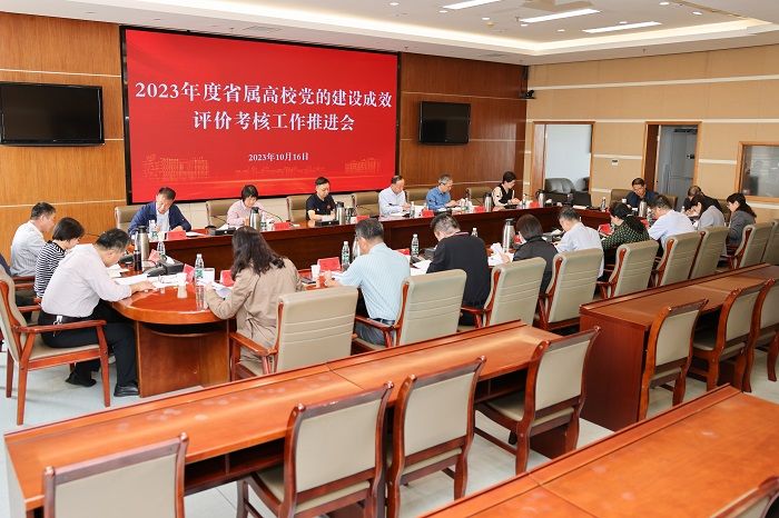 10月16日下午,在希望大道校区行政楼9楼会议室,学校召开2023年度省属高校党的建设成效评价考核工作推进会。党委副书记薛浩,党委常委、统战部部长姚军,党委常委、组织部部长邢晓平,党委常委、宣传部部长奚新国出席。相关责任部门负责人参加会议。