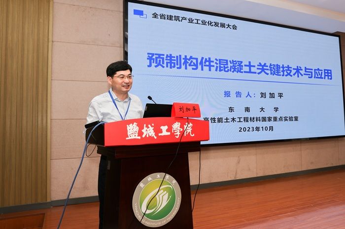 学术交流环节,结合装配式建筑发展前景、建筑材料研究等问题,刘加平、薛伟辰、王景全分别作了题目为“预制构件混凝土关键技术与应用”“新型装配式混凝土结构体系研发标准编制与工程应用”“基于UHPC的轻量化高性能桥梁结构创新研究”的学术报告,介绍了装配式混凝土建筑一体化建造关键技术。中亿丰建设集团股份有限公司满建政、南京长江都市建筑设计股份有限公司赵学斐、南通联泷装配式建筑科技有限公司龚祖平代表优秀企业分别进行了题为“基于高效连接的装配式预应力混合梁框架结构体系创新与工程实践”“某装配式组合结构居住建筑设计关键技术研究与应用”“LL20-150W装配式自保温剪力墙专用智能生产线—侧立模生产工艺自动化研究”的学术交流,重点呈现了江苏省装配式建筑企业在建筑产业工业化方面进行的重要工程实践。