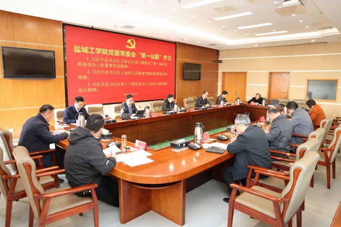 12月7日上午,在希望大道校区行政楼9楼视频会议室,校党委常委会“第一议题”认真学习习近平总书记在主持召开深入推进长三角一体化发展座谈会上、在盐城考察时、在第十个国家宪法日之际作出的重要讲话和指示精神。