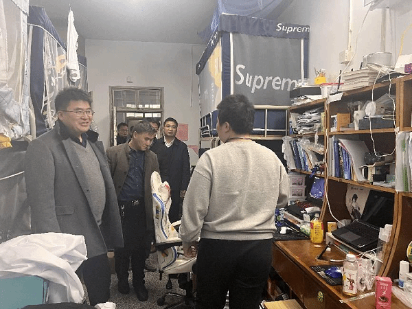为维护学校安全和稳定的正常秩序,切实加强源头管控,坚决杜绝各类安全隐患,12月6日下午,党委常委、副校长张勤芳带队分别走访希望大道、建军东路校区,开展学生宿舍安全检查。学生处、安保处、后勤保障集团等部门负责同志,二级学院分管学生工作书记和学工办主任等参加。