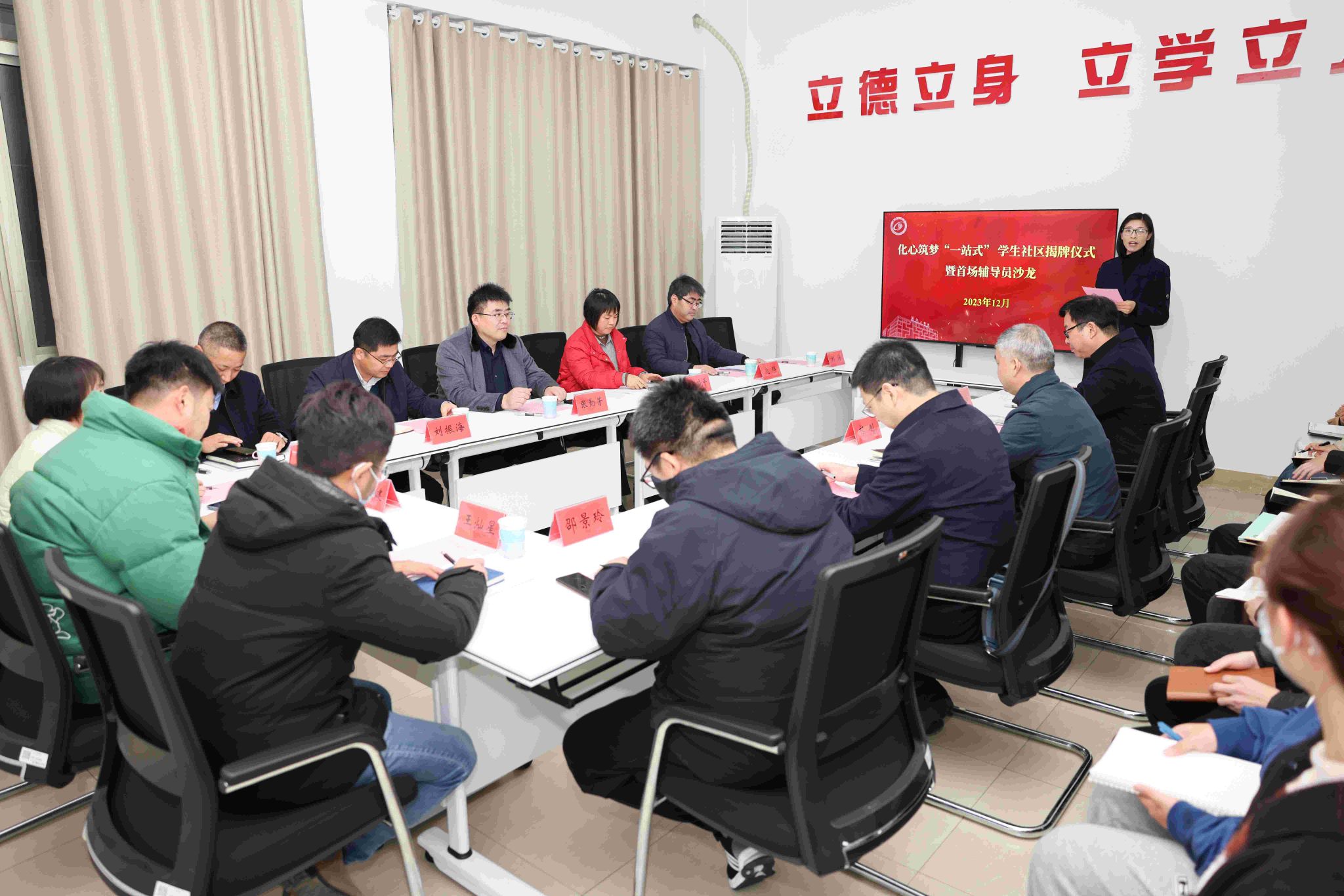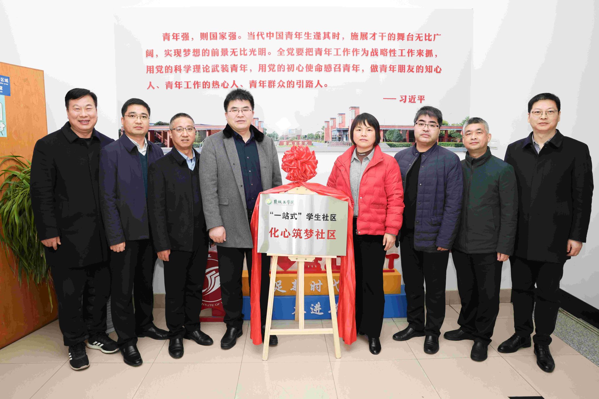 为打造党建和思想政治工作高地,持续探索和丰富“一站式”学生社区建设内涵,构建学生成长生态圈,12月13日下午,学校在建军东路校区化学化工学院206会议室,举行化心筑梦“一站式”学生社区揭牌仪式。校党委常委、副校长张勤芳,校党委常委、组织部部长邢晓平出席并为“一站式”学生社区揭牌。党委宣传部、学生处相关负责人,化学化工学院领导班子成员、科室负责人、全体专职辅导员、学生代表参加活动。