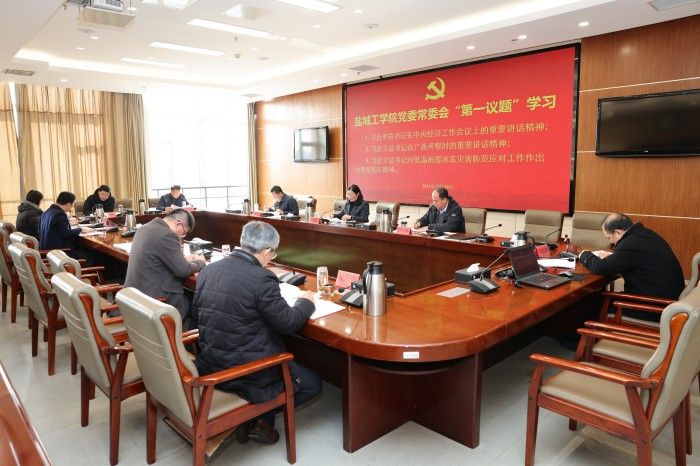 12月20日上午,在希望大道校区行政楼9楼视频会议室,校党委常委会“第一议题”认真学习习近平总书记在中央经济工作会议上、在广西考察时、对低温雨雪冰冻灾害防范应对工作作出的重要讲话重要指示精神。