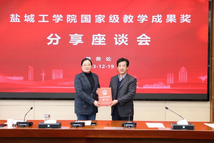 会上,方海林为我校2023年两个国家级教学成果奖的获奖代表颁发了国家级教学成果奖证书,并对他们表示祝贺。