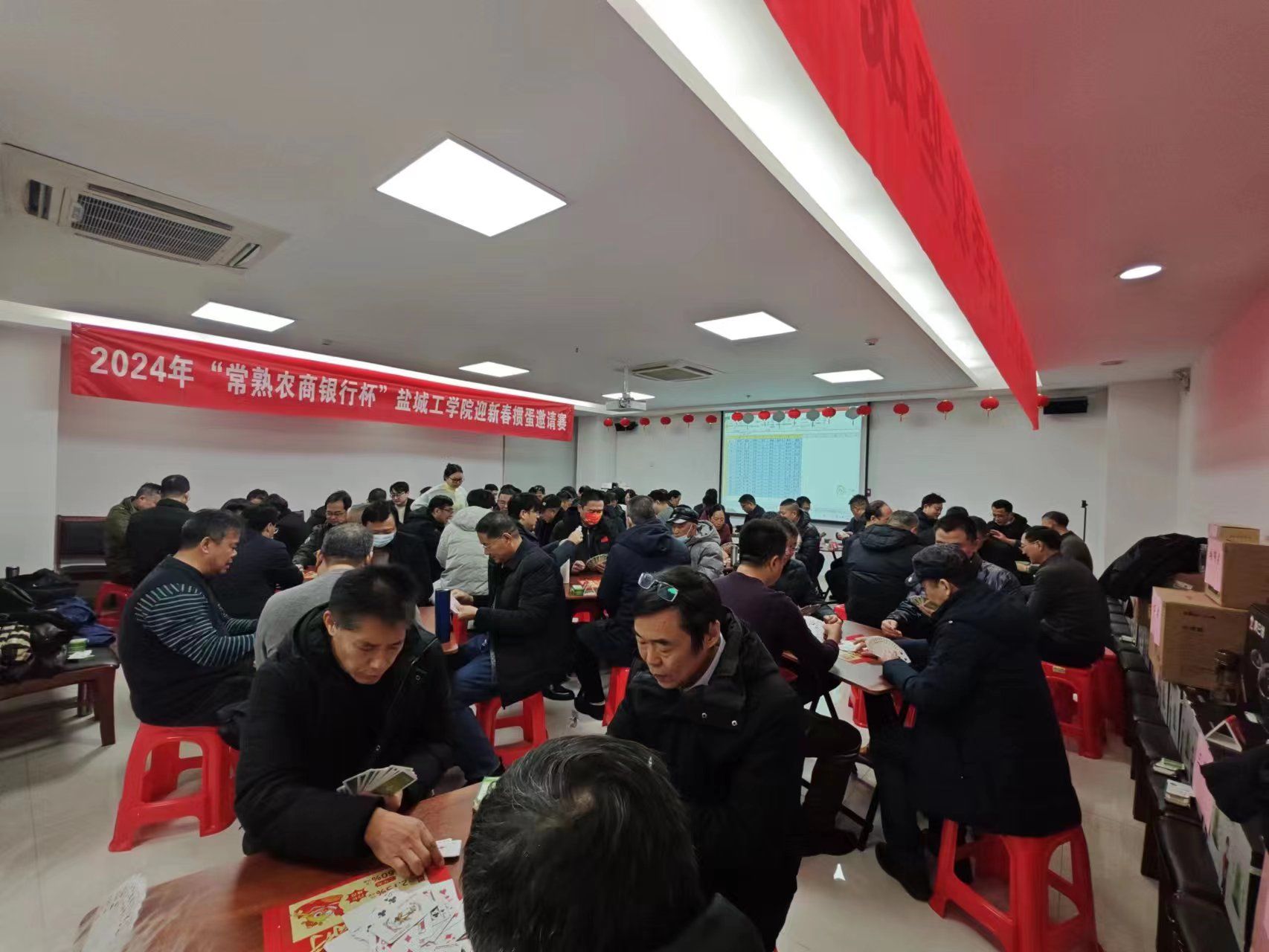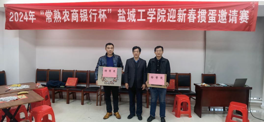 1月6日上午,2024年“常熟农商银行杯”盐城工学院迎新春掼蛋邀请赛在常熟农商银行亭湖支行二楼会议室举行,校党委常委、副校长王资生宣布比赛开始并为获特等奖选手颁奖,常熟农商银行亭湖支行行长宣维芳致欢迎词并为获一等奖选手颁奖。原校党委副书记、副校长张建祥,校党委常委、统战部部长姚军,校棋牌运动协会副会长杨汉华、周云峰等60位教职工和4位常熟农商银行亭湖支行员工应邀参赛。校棋牌运动协会会长谢毅敏主持开幕式和颁奖仪式,后勤保障集团副总经理李义峰担任比赛裁判长。