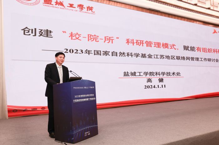 1月11日,由国家自然科学基金江苏地区科学基金联络网、南京大学主办,盐城工学院承办的2023年度国家自然科学基金江苏地区联络网管理工作研讨会在盐城召开。国家自然科学基金委计划与政策局局长王岩、国家自然科学基金委员会交叉科学部一处副处长戴亚飞出席。盐城市副市长、党组成员唐敬,我校党委副书记、校长邵荣、南京大学科学技术处处长姜田分别致辞。盐城市政府副秘书长颜彦、江苏理工学院副校长叶霞、盐城市科学技术局局长孙红参加会议。我校副校长、市政协副主席丁成主持开幕式,南京大学科学技术处副处长孙建主持会议报告,我校科技处处长高健主持闭幕式。