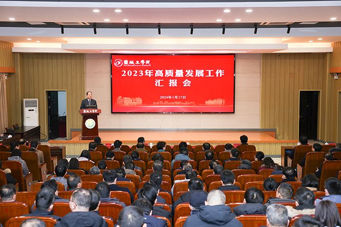 1月17日,在希望大道校区机械馆报告厅,学校召开2023年度高质量发展总结汇报会。党委副书记、校长邵荣主持会议。党委常委、副校长崔刚、王资生、王伟、张勤芳,党委常委、统战部长姚军,党委常委、组织部长邢晓平,党委常委、宣传部长奚新国等出席会议。