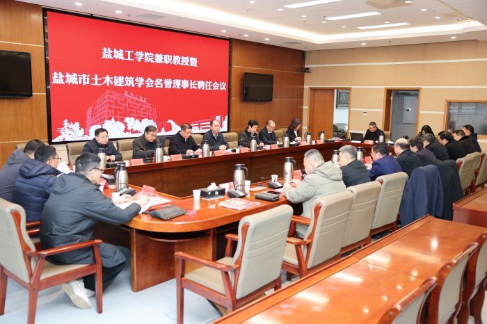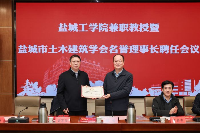 2月2日下午,学校在希望大道校区行政楼9楼会议室举行兼职教授暨盐城市土木建筑学会名誉理事长聘任仪式。校长、党委副书记邵荣,党委常委、副校长王资生,原党委常委、副校长宋长春,盐城市住房和城乡建设局原党组书记、局长张宏春,盐城市科协党组成员、副主席高福华,盐城市住房和城乡建设局原党组副书记、副局长张亚仿,盐城市住房和城乡建设局党委委员、市园林局副局长姚秀琴等出席。盐城市土木建筑学会理事长、我校土木工程学院荀勇教授,盐城市土木建筑学会副理事长、土木工程学院院长吴发红,盐城市土木建筑学会相关成员参加活动。高福华主持。