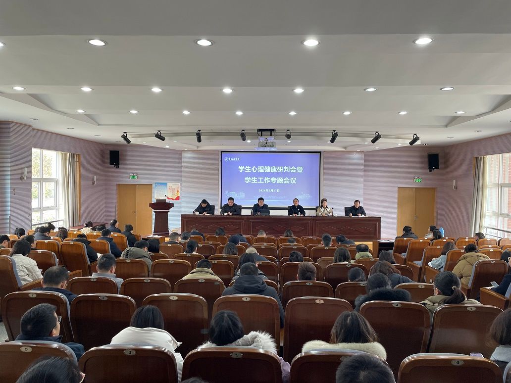 2月27日下午,在希望大道校区土木馆报告厅,学校召开学生心理健康研判会暨学生工作专题会议。党委常委、副校长张勤芳主持会议。学生处、安保处、团委主要负责人,研究生院、后勤集团相关负责人,二级学院分管学生工作书记,学工办(副)主任、团委(副)书记、全体专兼职辅导员,学生处、安保处、团委、研究生院科级以上人员,公寓管理中心主任等近200人参加会议。