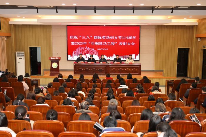 3月8日下午,学校在希望大道校区机械馆报告厅隆重召开庆祝“三八”国际劳动妇女节114周年暨2023年度“巾帼建功工程”表彰大会。校党委书记方海林出席并讲话,党委副书记薛浩主持会议。党委常委、组织部部长邢晓平宣读校工会《关于表彰2023年度“巾帼文明示范岗”、“巾帼建功标兵”的决定》。党委教师工作部部长、人事处处长沈晓梅,基建规划处处长、工会负责人廖大干,校工会女教职工委员会委员,各二级学院党委(总支)书记,各分工会主席、女工委员,女教职工代表,受表彰的“巾帼文明示范岗”负责人和“巾帼文明标兵”参加会议。