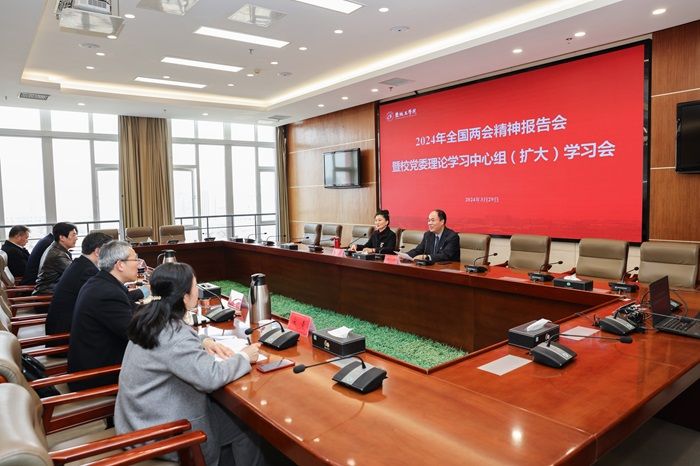 3月29日下午,在希望大道校区9楼视频会议室,我校召开全国两会精神报告会暨校党委理论学习中心组(扩大)学习会。全国人大代表、省戏剧家协会副主席陈澄应邀作专题报告。党委副书记、校长邵荣主持报告会。党委常委、副校长王资生,党委常委、纪委书记、省监委派驻监察专员陈伟,党委常委、副校长张勤芳,党委常委、党委宣传部部长奚新国出席,党办、发改办等校党委理论学习中心组成员参加。