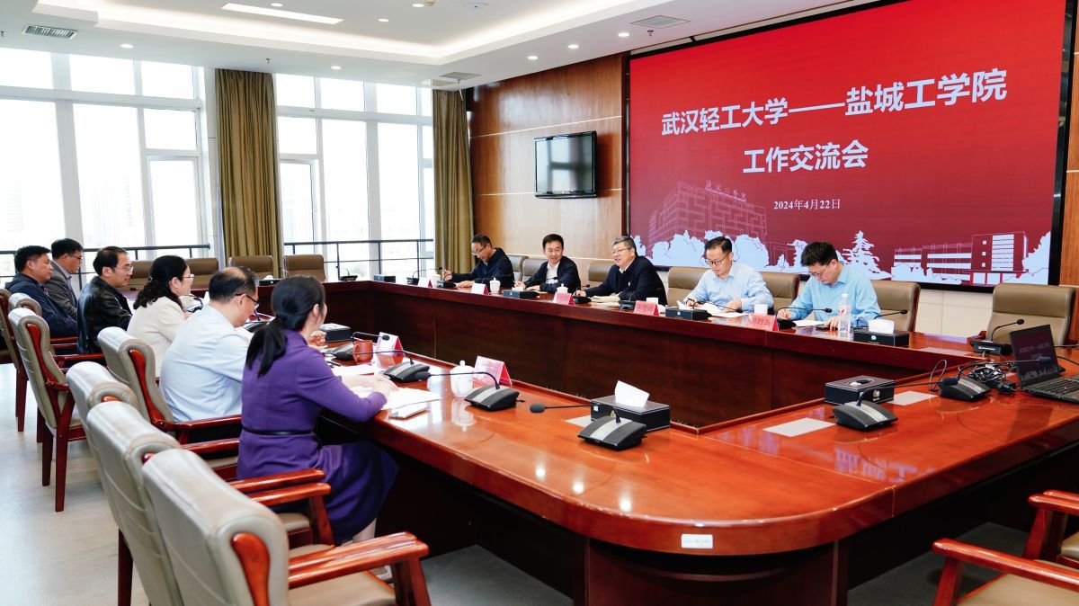 4月22日下午,武汉轻工大学校党委书记王立兵一行来校调研交流。校党委书记方海林,副校长、盐城市政协副主席丁成出席工作交流会。武汉轻工大学学校办公室主任王雪峰,常务副主任、校友办主任王宏光,我校校办主任裴森森,科技处处长高健,海洋与生物工程学院教授李朝霞、王爱民等参加。
