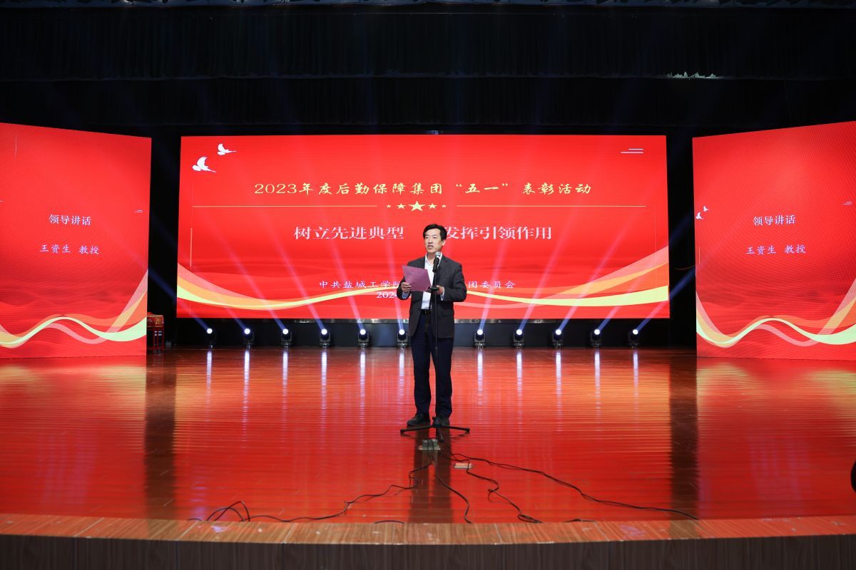 王资生代表校党委、行政向全校劳动者致以真切问候,向获奖的集体和个人表示热烈祝贺。他充分肯定了后勤保障集团在服务学校事业发展、回应师生美好校园生活需求中作出的成绩和贡献。他强调,成就源于奋斗,在巩固现有成绩的同时,要补短板、强弱项。后勤全体员工要提高政治站位,牢记安全生产理念,集中力量办大事,坚决贯彻落实校党委、行政各项决策部署,紧紧围绕学校重点、难点工作,为全面推动学校“十四五”规划和第四次党代会目标任务实施、加快推进高水平一流应用型大学建设、做好本科教育教学审核评估等工作,不断强化责任担当,科学谋划服务保障,为学校高质量发展贡献力量。