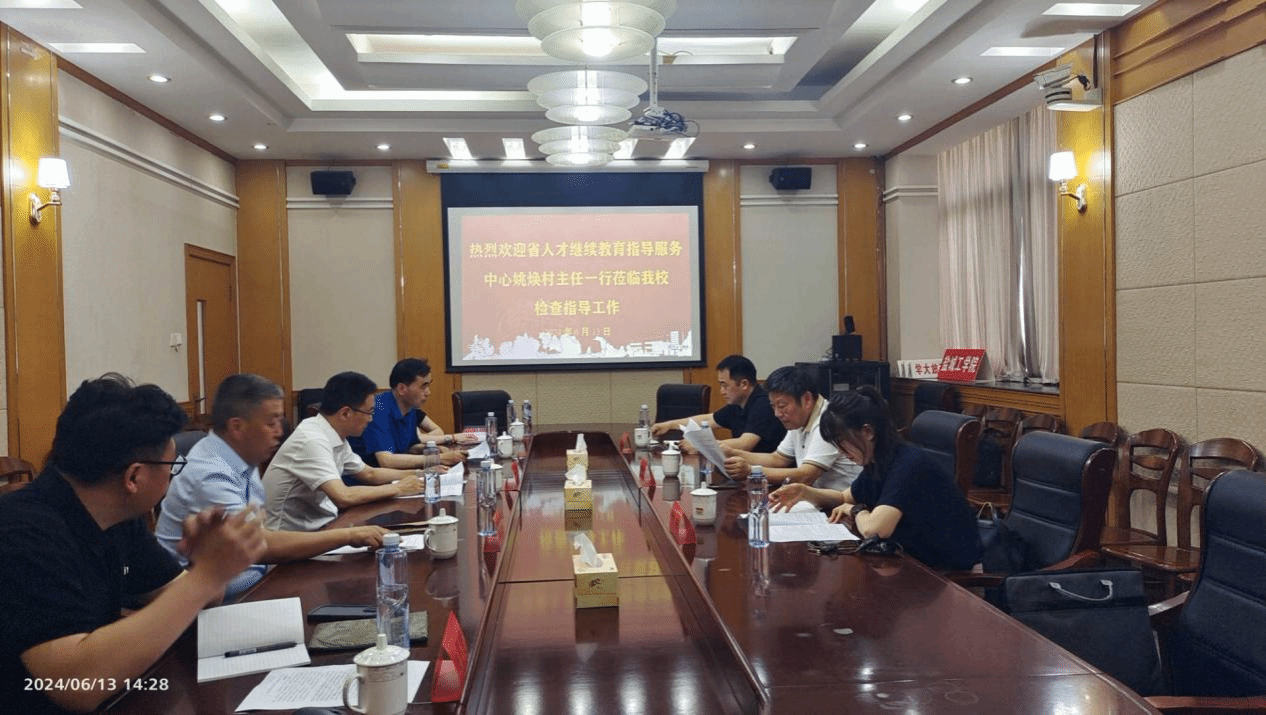 6月13日下午,省人才继续教育指导服务中心主任姚焕村一行来我校继续教育学院考察调研第七批专业技术人才继续教育基地申报情况。党委常委、副校长王伟主持会议。市人社局专技处处长黄欣球参加调研。