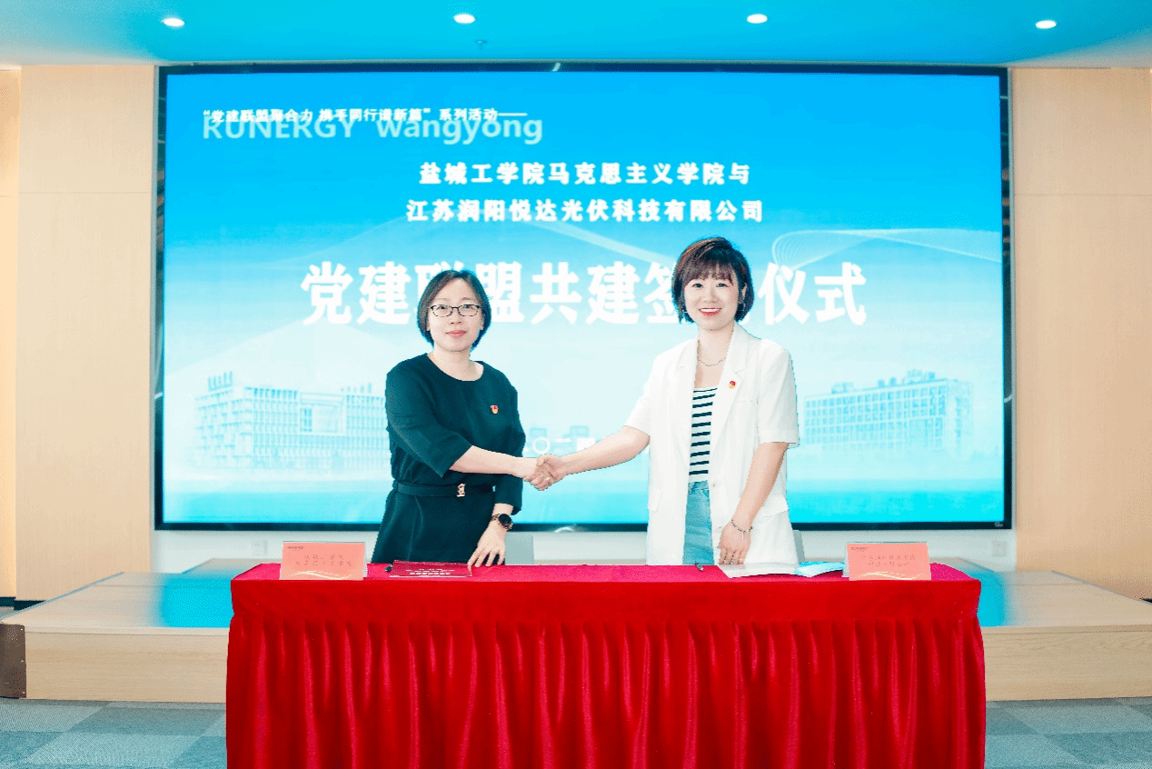 为深入学习贯彻党的二十大精神,落实新时代党的建设总要求和新时代党的组织路线,走好学校与行业、区域融合发展之路,6月17日上午,我校赴江苏润阳悦达光伏科技有限公司开展党建联盟共建活动。校党委副书记薛浩出席活动并讲话。党委常委、统战部部长姚军,党委常委、党委组织部部长邢晓平,党委常委、党委宣传部部长奚新国,马克思主义学院全体党员教师等40余人参加。活动由江苏润阳新能源科技股份有限公司行政总监许可主持。