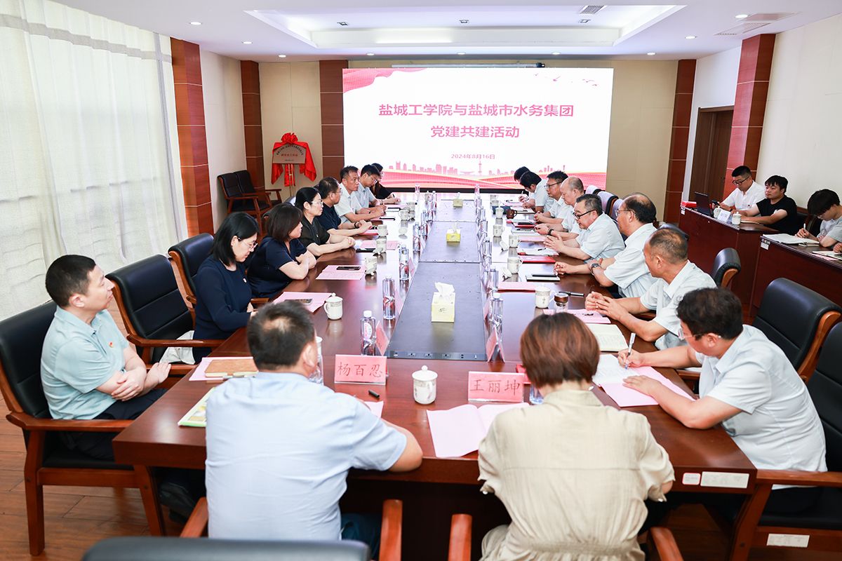 为深入学习宣传贯彻党的二十大、二十届二中、三中全会精神,进一步发挥党建引领作用,促进校企深度合作与资源共享,8月16日下午,我校与盐城市水务集团有限公司在盐龙湖水源地举办党建共建活动。活动开始前,校党委书记方海林,副校长丁成,盐城城投集团党委副书记、总经理郑效青,党委委员、副总经理苗久成就双方合作事宜进行了洽谈并参观了盐龙湖水源地展厅。双方相关部门负责人参加了此次党建共建活动。