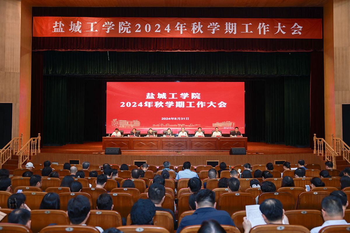8月31日上午,学校在希望大道校区行政楼报告厅召开2024年秋学期工作大会,回顾总结2024春学期工作,安排部署秋学期重点工作任务,提出开学初具体工作要求。校党委书记方海林主持会议,党委副书记、校长邵荣作工作报告。党委副书记薛浩,党委常委、副校长王资生,副校长、盐城市政协副主席丁成,党委常委、副校长王伟,党委常委、纪委书记、省监委派驻盐城工学院监察专员陈伟,党委常委、副校长张勤芳,党委常委、组织部部长邢晓平,党委常委、宣传部部长奚新国出席。