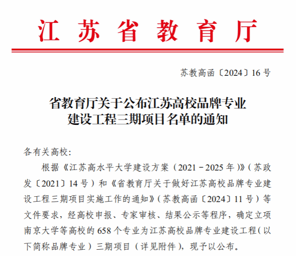 江苏高校品牌专业建设工程三期项目由省教育厅实施,旨在聚焦国家重大战略和江苏经济社会高质量发展需求,优化调整专业布局,推进产教融合、科教融汇,加大力度培养急需紧缺人才,提升专业建设与经济社会发展需求的匹配度和贡献力,同时坚持以争创一流和塑造品牌为目标,分类推进各领域专业建设,实现品牌专业高质量内涵式发展,为打造具有全球影响力的产业科技创新中心和发展新质生产力的重要阵地提供人才支撑。