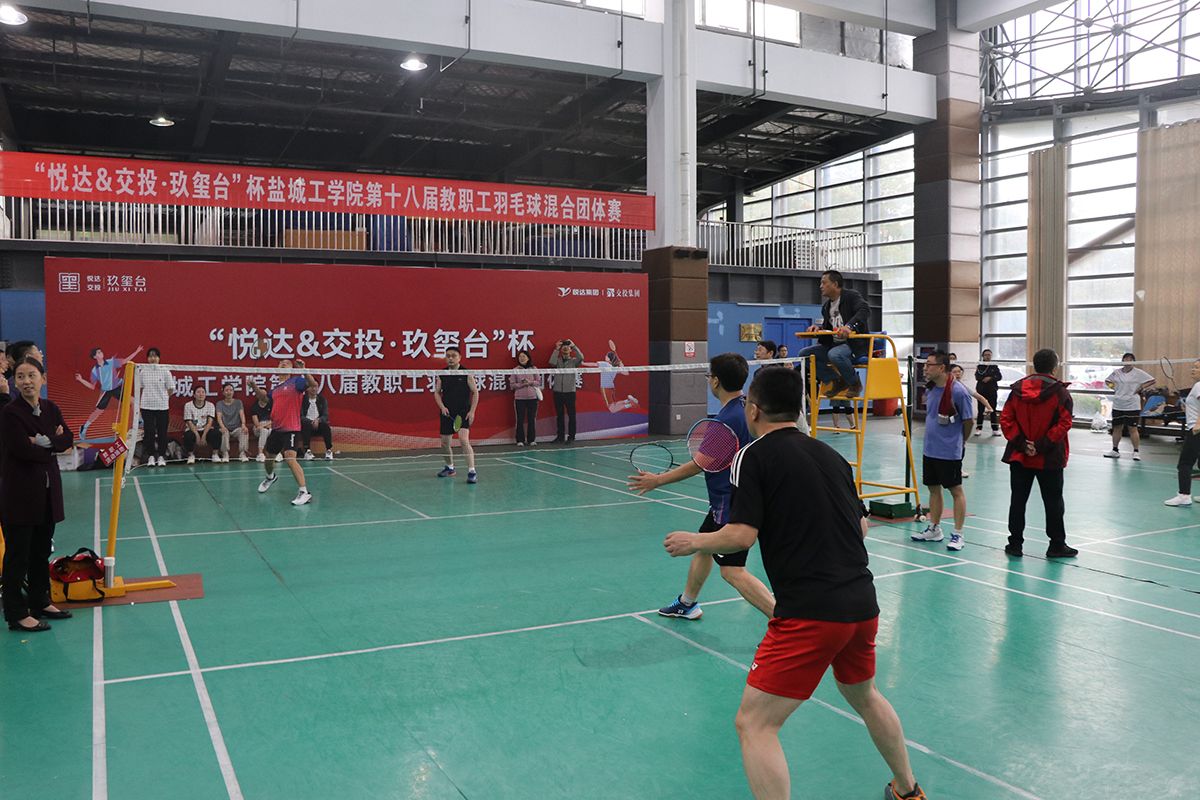 10月19日,盐城工学院第十八届教职工羽毛球混合团体赛在希望大道校区风雨操场成功举办。校党委副书记薛浩出席开幕式。工会、妇联主席徐新华代表组委会讲话,悦达集团有限公司党委委员、副总经理宗捍代表赞助方致辞,比赛裁判长、体育学院韩奇老师介绍《盐城工学院第十八届教职工羽毛球混合团体赛竞赛规则》,海生学院陈小冬老师代表运动员宣誓,体育学院刘文方老师代表裁判员宣誓。体育学院院长仇乃民宣布比赛开始,体育学院党总支书记董学兴主持开幕式。