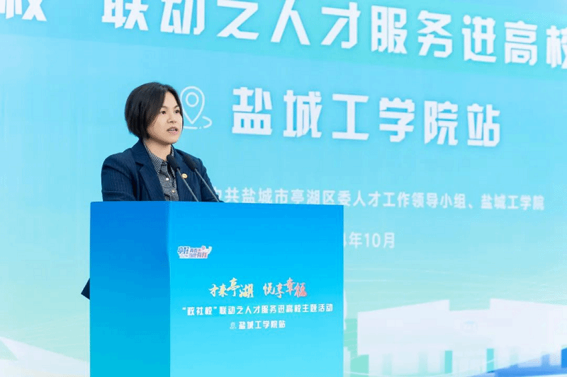 邢晓平简要介绍了学校办学历史、人才培养特色和立足地方、服务社会等情况。她指出,学校聚焦盐城市人才强市战略,深入实施“黄海明珠”人才计划和学子“留盐行动”,时刻展现驻盐高校的责任与担当。通过加大政策宣传、完善就业服务、搭建就业平台,学校为毕业生提供了更多“家门口”的优质就业机会,以实际行动打通毕业生就业“最后一公里”,让更多优秀的盐工学子在盐阜大地上用心用力书写家国情怀、绘就人生华章。
